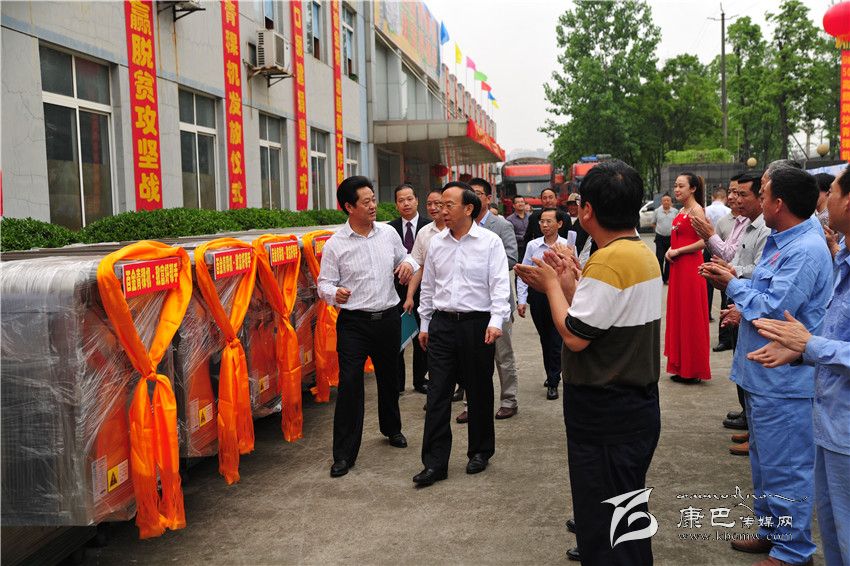成都市委常委謝瑞武、州委常委、農(nóng)工委主任楊凱在啟運儀式現(xiàn)場參觀捐贈產(chǎn)品。