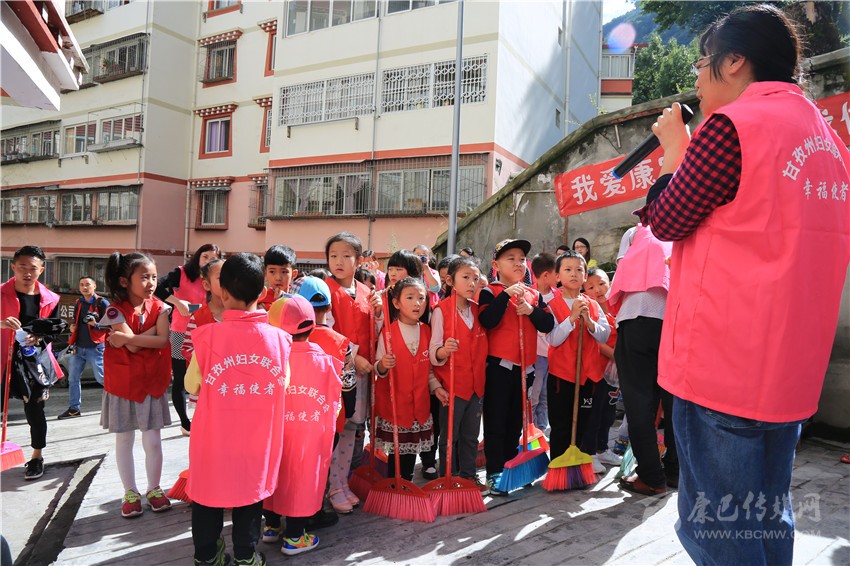 康定小志愿者走進社區(qū)參加公益活動。