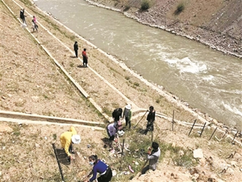 爐霍縣洛秋鄉(xiāng)村民對轄區(qū)河道進行治理。