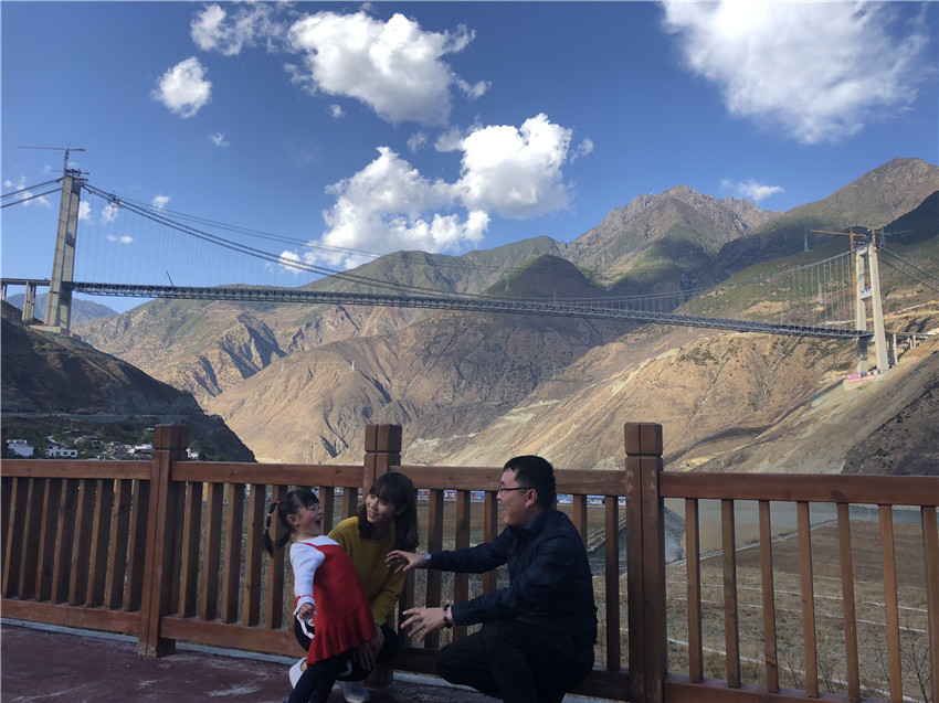 2014年大橋開建,柏國勝夫婦就把家安在了大橋旁的工地,把辛勤汗水融入這片土地,如今3歲的小孩就在當(dāng)?shù)赜變簣@讀書,成為地道的“瀘定人”。