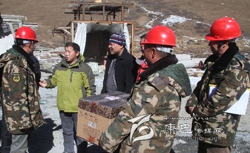 為打好今年交通攻堅大決戰(zhàn),我州所有在建公路隧道冬季不停工,部分工程技術(shù)人員和民工將放棄春節(jié)與家人團聚。日前,受州委、州政府領(lǐng)導(dǎo)的委托,州政府副秘書長、州交通協(xié)調(diào)辦主任高見在前往石渠走訪“親戚”途中,專程看望慰問了國道317線雀兒山隧道和省道217線石馬路海子山隧道的工程技術(shù)人員和民工,并轉(zhuǎn)達了州委、州政府領(lǐng)導(dǎo)的親切問候。圖為在海子隧道施工現(xiàn)場慰問時的場景。(本網(wǎng)記者 攝影報道)