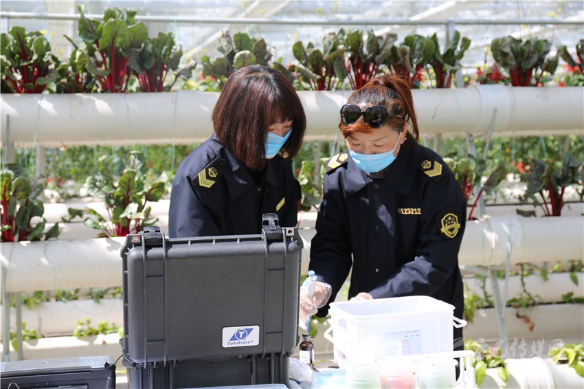 “無論是源頭把控還是后期培植,我們都是嚴(yán)格按照國家安全食品標(biāo)準(zhǔn)生產(chǎn),灌溉用水、土壤的有機(jī)改良、育苗、田間管理、施肥、病蟲害防治……每一個環(huán)節(jié)保證做到專業(yè)、安全。特別是對病蟲害防治,我們使用的都是高于市場普通藥品5倍以上價格的生物制劑,保證所有蔬菜都是綠色無公害?!被丶夹g(shù)員段洪良拍起拍胸口?!百|(zhì)監(jiān)局的工作人員就在我旁邊,我咋敢撒謊?!彪S著他的指引,筆者看到一位穿著制服的工作人員正在大棚里進(jìn)行茄子樣品檢測。