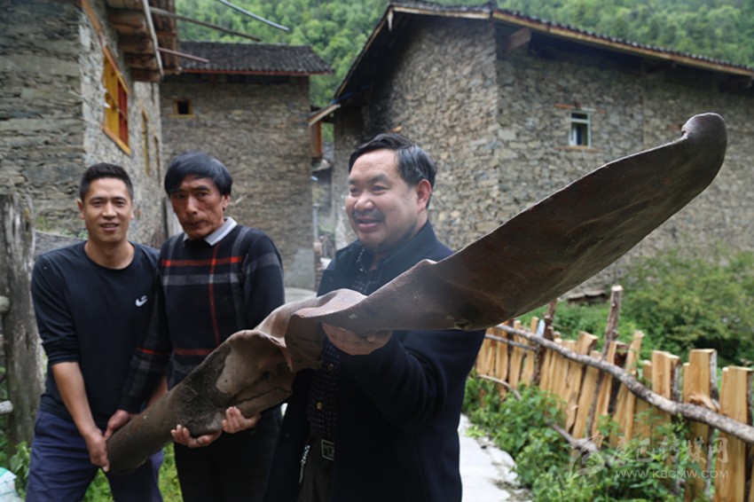 “好像謝明楊的兒子謝從富家有個‘風刀’(指螺旋槳葉片),你們去找哈?!彼妓髌?,楊高清突然記起村子里還有散落的飛機零件。