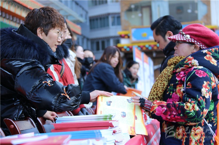 活動現(xiàn)場,工作人員為市民發(fā)放民族團結(jié)進步宣傳品、民族團結(jié)進步藏漢雙語宣傳教育讀本、宣傳畫、宣傳折頁、宣傳掛歷、《中國民族報》甘孜州民族團結(jié)???、《民族》雜志甘孜州民族團結(jié)??雀黝愋麄髻Y料9800余份(本),擺放展板30個。來自丹巴縣的仁真說:”現(xiàn)在的幸福生活離不開偉大的中國共產(chǎn)黨的領(lǐng)導,也離不開全國各族人民共同團結(jié)奮斗、共同繁榮發(fā)展?!?/p>