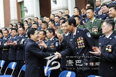 2013年10月,國(guó)務(wù)委員、公安部長(zhǎng)郭聲琨接見全國(guó)公安英模代表。 (州特警支隊(duì)提供)