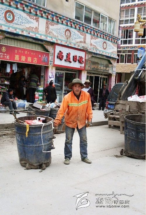 環(huán)衛(wèi)工人都有各自的責任區(qū),降多吉除了把自己的責任區(qū)打掃得干干凈凈、管理得井井有條外,他還義務擺放定點垃圾箱,幫助女職工清掃街道。每逢節(jié)假日,是垃圾產生的高峰期,加班加點自然也就在所難免。今年農歷春節(jié)和藏歷新年期間,由于兩個新年相隔一個月,而當地干部群眾不但有兩個新年一起過的習慣,而且都過得歡天喜地。節(jié)日期間,縣城垃圾倍增,他所負責的區(qū)段尤為突出。寒冷的冬季,由于呼呼的狂風,垃圾滿天飛,哪怕每天清掃五六次,哪怕起早貪黑不間斷,他依然頂風冒雪、默默堅守。大年初五,由于連續(xù)幾天的“早六晚九”和饑餓、寒冷、勞累,他一頭栽倒在地。打了兩天點滴之后,他又重新投入到了工作中。