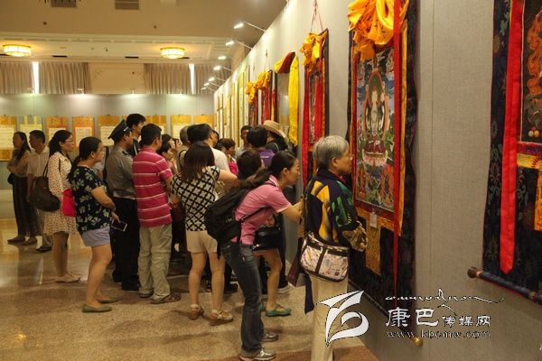 在四川甘孜藏區(qū)發(fā)展成就暨旅游圖片展區(qū),北京市民陳果對甘孜風(fēng)光充滿好奇,他不停地用手機(jī)拍攝著展出的精美圖片。在四川甘孜藏區(qū)精品文物及非遺項目展演區(qū),人們對展出的文物格外關(guān)注,剛剛參加完高考的北大附中學(xué)生鄭越越與母親參觀著一件又一件文物,還用隨身攜帶的相機(jī)將它們一一收錄入鏡頭。她說自己最關(guān)注的就是歷史,如果考上大學(xué),還會選學(xué)歷史;現(xiàn)場展出的文物在一定程度上反映了甘孜藏區(qū)的歷史,所以就決定把它們?nèi)南聛?,說不定以后會有用。此外,在非遺項目展示區(qū),爐霍郎卡杰唐卡特別受“熱捧”,從散點(diǎn)透視到線條設(shè)色,在講解人員的引領(lǐng)下,幾十位美院學(xué)生及市民聽得如癡如醉。