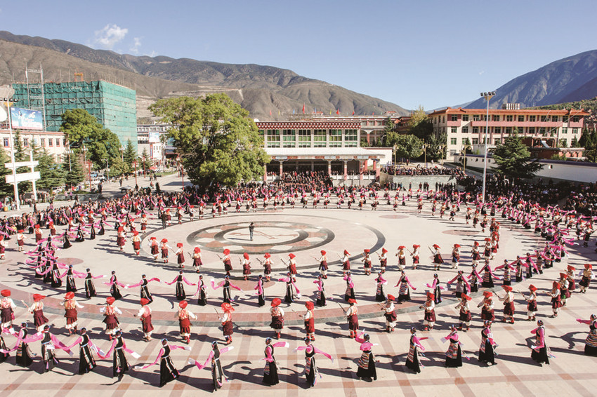 甘孜州有藏、漢、彝、羌、納西、回等20多個民族,其中藏族人口占81.5%。從古至今,甘孜大地各族群眾交往交流交融,各族群眾“同唱一首歌、同跳一支舞、同吃一桌飯”成為習(xí)以為常的生活場景,人心凝聚、團結(jié)奮進的精神紐帶更加牢固。