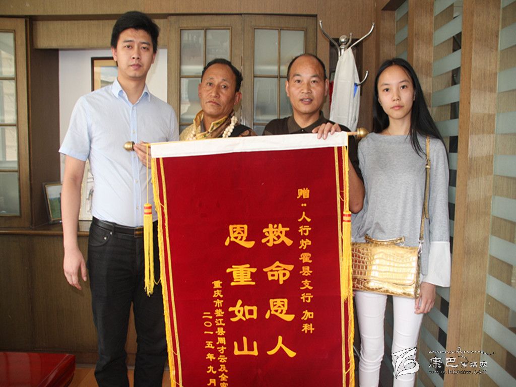 9月8日,重慶墊江人周才云攜女兒周瑩、女婿李超,從千里之外專程趕到人行爐霍縣支行向支行領(lǐng)導(dǎo)贈(zèng)送“救命恩人,恩重如山”錦旗和感謝信。9月10日,爐霍縣委宣傳部在人行爐霍縣支行召開(kāi)會(huì)議,對(duì)該行職工加科助人為樂(lè)的舉動(dòng)進(jìn)行表彰。