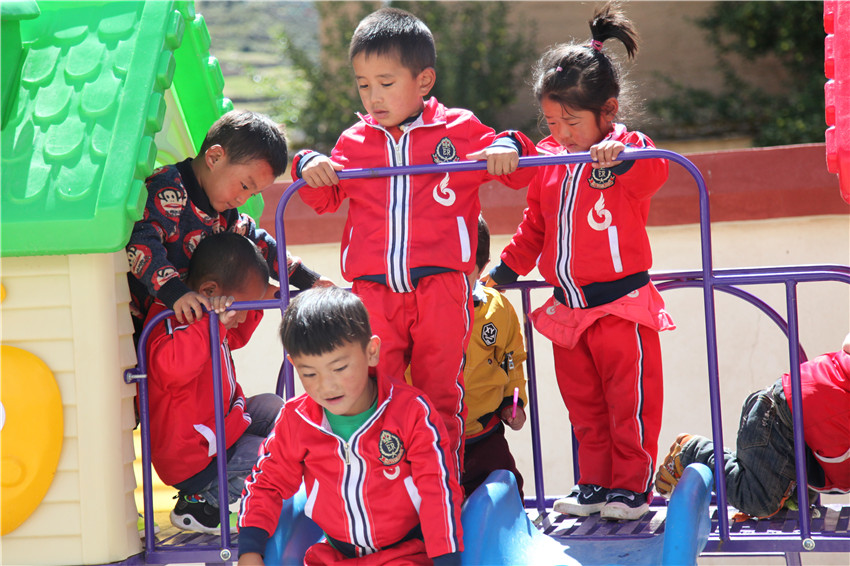 理塘縣濯桑鄉(xiāng)下汝村五歲的格絨澤西,去年9月就讀于下汝村幼兒園,現(xiàn)在簡單的漢字、拼音、藏文字母能認得到,從1可以數(shù)到20,唱兒歌跳藏舞特別開心,這讓父親曲云十分高興,不然像以前只好在家中玩?;驇У椒拍恋牟輬觥谧鞯牡乩?。每次父親帶她上縣城,格絨澤西都十分羨慕城里的孩子能背上小書包上幼兒園?!罢鏇]想到,我家的小孩在村里就能讀幼兒園,還學(xué)到了知識?!鼻聘吲d地說。