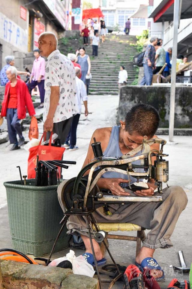 8月15日,南部縣長坪鎮(zhèn)文化街,正在補(bǔ)鞋的周強(qiáng)善。攝影 張可凡