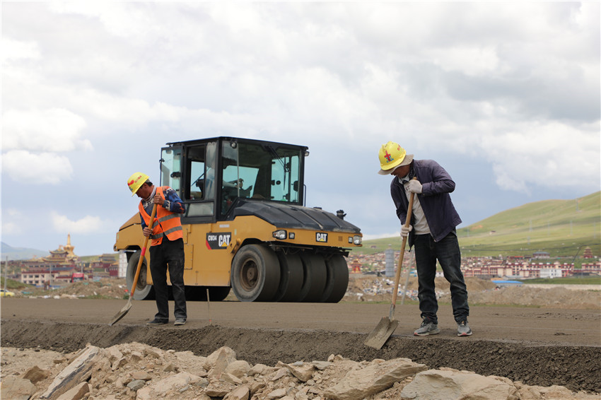 通過龐斌的多方協調,卡娘村文化廣場改造項目被納入2021年理塘縣農村綜合改革方案中,從綜合轉移資金中撥款39萬元進行改造。為節(jié)約投入,駐村工作隊和村“兩委”干部主動義務投工投勞,他們拿著鐵鏟平整場地,開著拖拉機四處找片石。