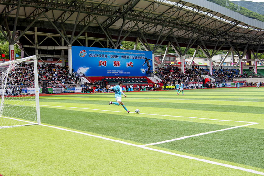 硬朗拼搶、遠(yuǎn)距轉(zhuǎn)移、中場(chǎng)攔截、邊路突破、定位絕殺……7月15日下午萬(wàn)眾期待的2023年首屆“貢嘎杯”州際青年足球邀請(qǐng)賽決賽,在康定市北門(mén)體育場(chǎng)上演,在歷時(shí)一周比拼角逐后,甘肅甘南州代表隊(duì)與西藏昌都市代表隊(duì)會(huì)師巔峰,最終甘肅甘南隊(duì)以2比1戰(zhàn)績(jī)登頂奪冠,捧起了冠軍獎(jiǎng)杯“貢嘎杯”,迎來(lái)首屆杯賽最高潮。