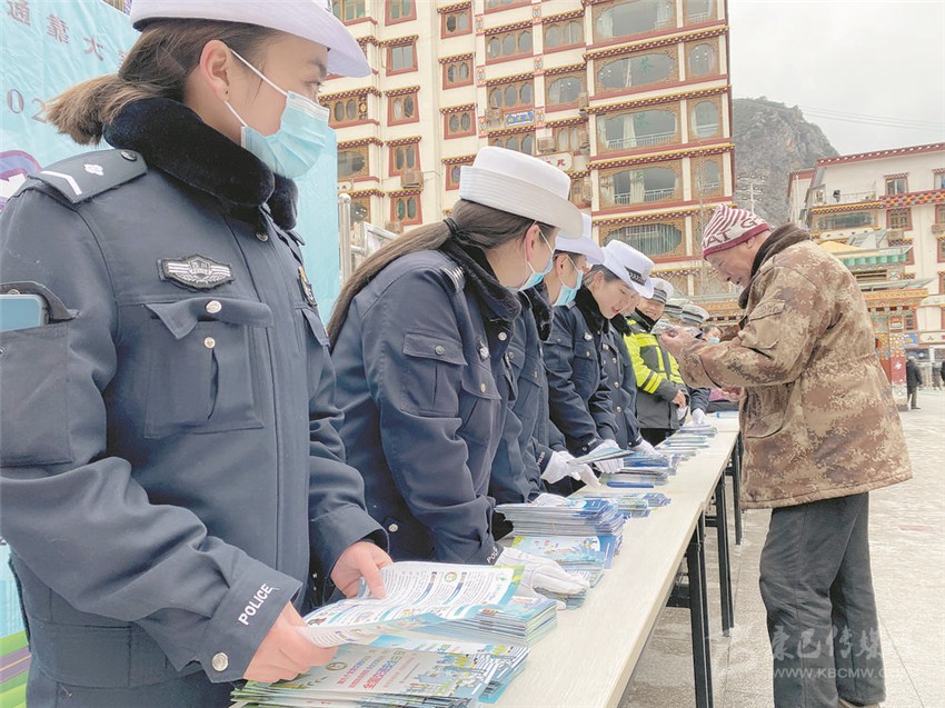 當(dāng)天上午10時,州公安局交警支隊、康定市公安局交警大隊聯(lián)合中國移動四川甘孜分公司、中國人保甘孜分公司,結(jié)合轄區(qū)實際,在康定城區(qū)開展“122”宣傳教育主題活動。