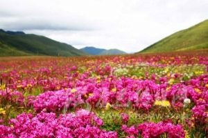 木雅圣地景區(qū)坐落于康定折多山西側(cè)的“木雅辛康”,是一座以民俗風(fēng)情與自然風(fēng)光相結(jié)合的,以體現(xiàn)藏族木雅文化為主題的專題旅游區(qū)。擁有雪山、草原、花海、河流、湖泊和木雅藏族民俗文化等眾多旅游景觀,共有5個主要景點(diǎn),“花海尋蹤”是當(dāng)年木雅公主很愛游玩之地,也是整個景區(qū)花開得很早很茂盛的地方?!拌笠羲透!笔悄狙诺貐^(qū)享有盛名的藏傳佛教寺廟?!疤旖缒粮琛笔悄狙艊鴤鹘y(tǒng)的冬季放牧之地,這里牧草極為豐富?!胺鹩幽狙拧笔且粋€用經(jīng)幡制作而成的釋迦牟尼佛像?!叭悍鍑痢笔亲o(hù)衛(wèi)木雅國的一道天然屏障。