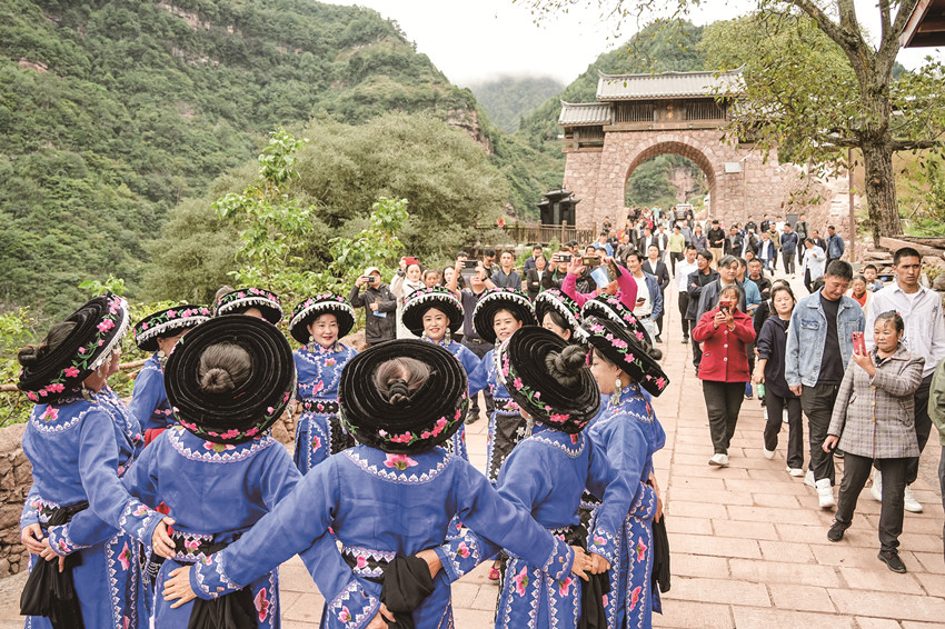 除了感受田園慢生活,嵐安古寨獨(dú)特的自然風(fēng)光也讓游客放慢了腳步?!半p節(jié)”假期,嵐安特色民宿依托優(yōu)美的自然環(huán)境和貴瓊文化,吸引了不少游客入住,游客可以住在藏寨里,品嘗特色美食、跳嵐安鍋莊、體驗(yàn)推豆腐等特色民俗活動(dòng)。