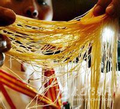 巴塘金絲面是巴塘人特別愛吃的一種面食,其做工考究,味香可口,做好的面隔夜吃也頗具風(fēng)味。它一要特好的面粉;二要用雞蛋、豆粉。