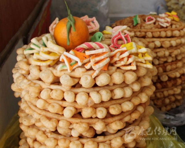 卡賽是藏族人過年必備的美食。用酥油、菜油、豬油等炸成多種面食,類似麻花、油條之類。多在藏歷年時食用。分為耳朵形、蝴蝶形、條形、方形、圓形等各種形狀,涂以顏料,裹以砂糖。既是裝飾神案的藝術品,又是款待客人的佳肴?!翱ㄙ悺钡钠贩N花色常常成為女主人勤勞、智慧和熱情的象征,在節(jié)日里分外引人注目。