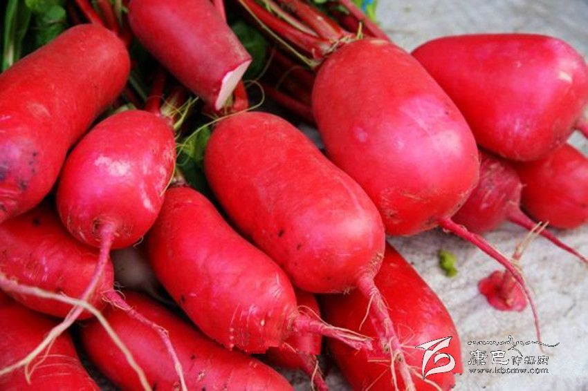 康定縣種植紅皮蘿卜歷史悠久,《康定縣志》(1995年版)記載民國18年設(shè)于城郊的西康省農(nóng)事試驗(yàn)場及1928年建立的西康省農(nóng)業(yè)改進(jìn)所,都曾對(duì)其作過引進(jìn)、試種,和園根(蕪菁)、洋芋并列享有康定“三寶”之譽(yù)??刀t皮蘿卜除含葡萄糖、蔗糖、果糖、多縮戊糖、粗纖維、維生素C、礦物質(zhì)和少量粗蛋白外,還含多種氨基酸,淀粉酶含量很高,肉質(zhì)致密,色呈淡綠色,水多味甜、微辣,是著名的生食品種,人稱“水果蘿卜”。
