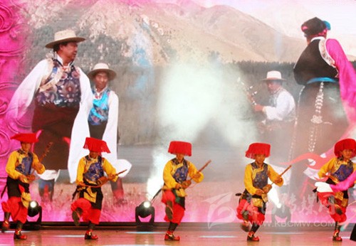 甘孜州地處高原,各縣地域環(huán)境、語(yǔ)言均有差異,且地近內(nèi)地,漢族、彝族、納西族音樂(lè)文化也有浸溶,因而民歌體裁、音韻、調(diào)式不全同于其他藏區(qū)。甘孜州的歌和舞,在不同縣之間,甚至同一個(gè)縣因山溝、村落不同,也存在較大差異,故呈多姿多彩狀況,藏族民歌極為豐富多彩,兩性相愛(ài)有情歌,勞動(dòng)之時(shí)有勞動(dòng)歌,伐薪、放牧有山歌,新友相聚有酒歌,婚嫁有婚禮歌,勸人勤于耕作有月會(huì)歌,還有新房落成歌,游春之時(shí)要跳弦子、鍋莊、踢踏舞,還要打“箍箍卦歌”等。總之是無(wú)時(shí)不歌,無(wú)事不歌,人人能歌善舞,故甘孜州有“歌舞海洋”之美稱(chēng)。