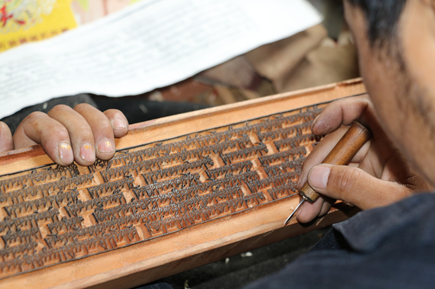 每人每天雕刻不能超過一定數(shù)量,這是為了防止趕進(jìn)度、影響質(zhì)量,創(chuàng)立之初就定下的;從書寫到雕刻印刷,內(nèi)容要經(jīng)過近十次審校。刻好的印版用酥油浸泡、自然曬干,如此反復(fù),才能不腐不裂;印刷時(shí),每次搬運(yùn)印版不能超過10個(gè),為減少對(duì)字的磨損。一塊印版單次印刷不能超過7次,以防木頭被過度浸透而腐爛……